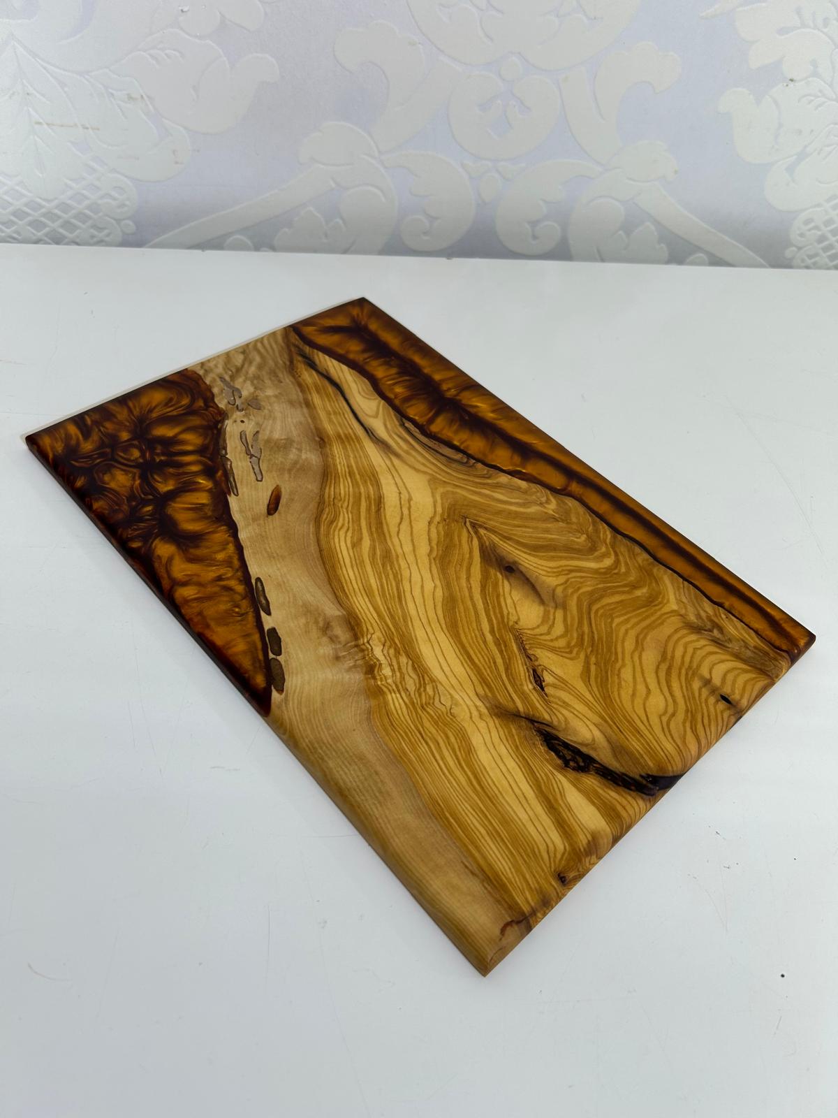 Frühtücksbrettchen Oliven Epoxid Harz Flame Kupfer